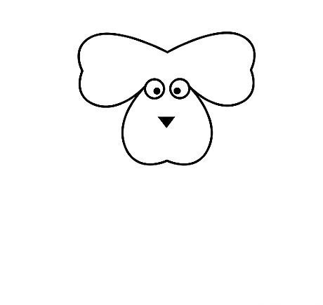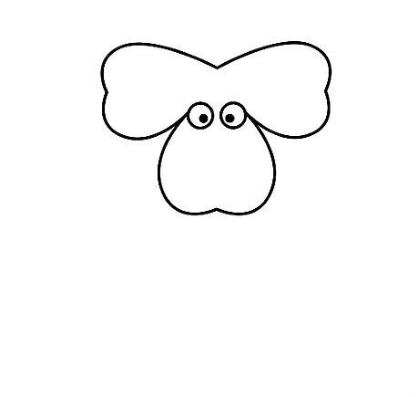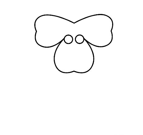 Draw two circles for eyes inside the bottom leaf of the clover shape.