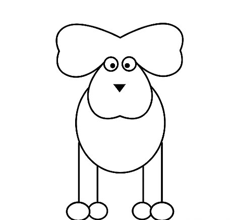 Draw two short vertical lines connected to the bottom the oval shape for legs.