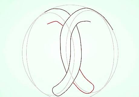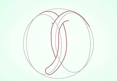 Draw a large circle at the center of the paper. Within that circle, draw two vertical ovals that will intersect each other halfway.