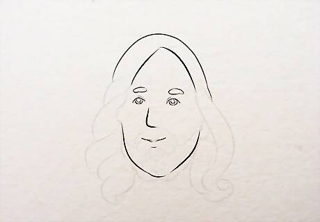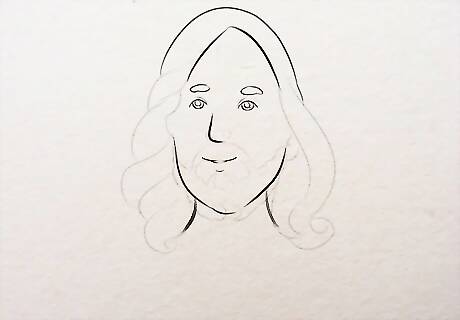 Make the neck. Draw two lines starting below the ears and stretch them out as it goes down towards the shoulders. Accentuate the lips, eyebrows and hair. Now that the face looks ready, you can make the lines darker, especially if you are not planning on coloring it. Simply shading the entire drawing with a pencil can also look tremendously impactful.