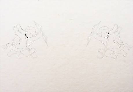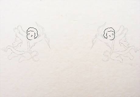 Make small "u" shapes on both sides of Jesus. You can make both the cherubim simultaneously to get the shapes about right or you can draw one after another. These u shapes will be for the face of the cherubim and will be smaller than Jesus's face.