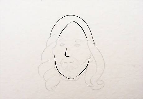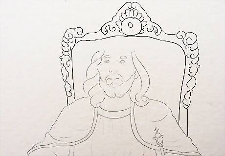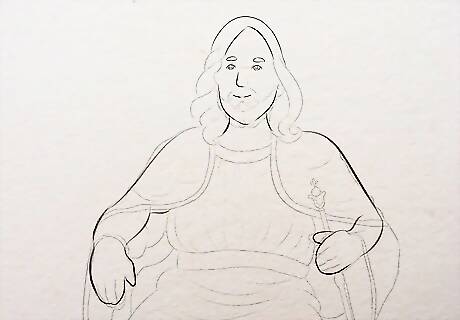 Draw the jawline. Make a pointed U shape for the jawline. Position the face keeping seated Jesus in mind. Standing Jesus will require the face to be even higher. You can draw the throne and other background images later.