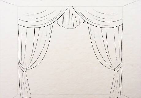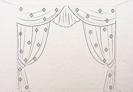 Add a motif to the curtains. Draw a floral motif or any recurring shape to it. Make polka dots in the remaining plain area to fill it up. Color it last after coloring the curtains so the motif and the spots show clearly and don't mix with the background. Make a tassle at the end of each curve to add a touch of creativity to it.