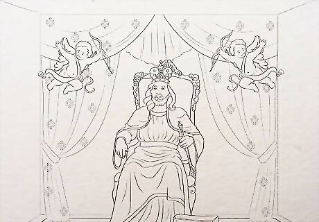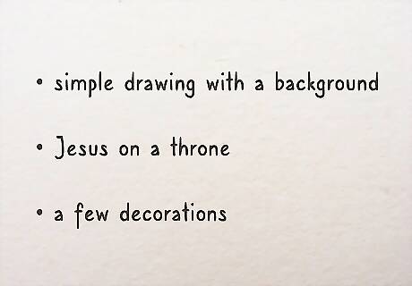 Imagine the setup. You can make it a simple drawing with a background, Jesus on a throne and a few decorations or you can make it really beautiful so that it shows grandeur and princely appeal.
