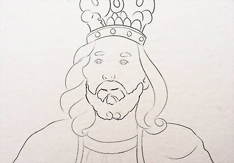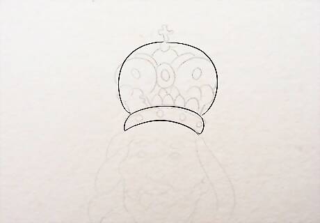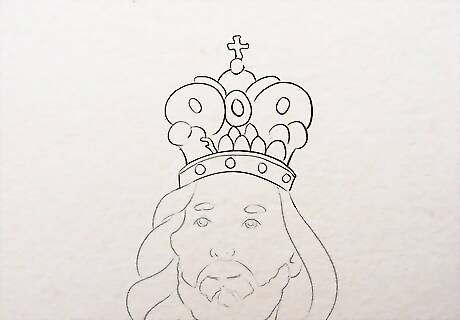 Make the Crown. Draw an oval or a curved line on the forehead of Jesus to make His crown. Start a little above the eyebrows and make both the corners go up.