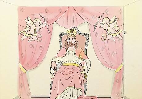 Know what you will be making. You can make a palatial room with a throne. Jesus will be seated on a throne with prince-like attire, jewellery and crown. There will be lamps or light flares because Jesus is light. A picture of Jesus without light is incomplete.