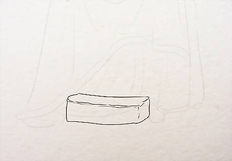 Make a footstool for Jesus. To have Jesus rest His feet, draw a broad box shape. Draw the three sides of the box. The fourth side need not be made as the hem of Jesus's robe will be on it. Make double lines for the front horizontal line of the stool to show the thickness of the footstool.