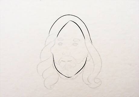 Make the hairline. Start with an A shape right at the forehead and then make a double line like an upside down U on top of the forehead. The forehead hair can be made wavy, getting wider as it reaches the ears. The length of the hair can be perfected later on. This is the pencil work that needs to be light yet well defined. You may have to erase many lines to get the look right. The details like eyes, nose, lips need not be stressed while sketching as while coloring, it may not remain the same size as was with the pencil work. If you tend to get the color smudged, you can leave coloring the facial features for last. You can use coloring pencils to make thin and fine lines (over your pencil work) after coloring the entire picture.