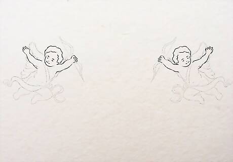 Make the legs. Make the legs like you made the arms with slightly angular lines. Make double lines for the legs that are thick on top and thinner as it reaches the ankle. Both the legs can look a little different. Only a single side of the cherub may be visible, i.e. either the left or the right. So, the back can start near the waist. You can complete the entire stretch from the waist to the toe in one wavy line. Make the feet in a curved box shape. Just make the big toe stretched out.