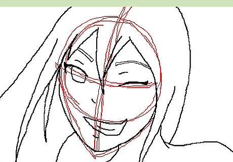 Draw the guide lines. These lines are what will give you a basic idea of what the shape of the face is. The color should either be in red or blue, or whatever color you won't be using as your lineart (which is usually black.)