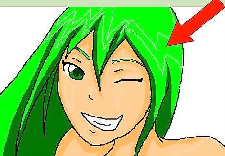 Create highlights. Click your skin tone again, go to edit colors, and make a much lighter version of your skin tone, almost white. Pencil the outline of the highlights, on hair and skin, and fill them in.