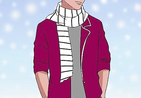 Choose a fashion-forward blazer. Blazers streamline any look and add a layer of warmth. You can choose a blazer in a heavier fabric, such as velvet or tweet, to really stand out. An eye-catching scarf can brighten up a dark blazer.