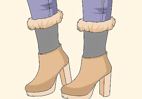 Break out your warmest, furriest boots. You can comfortably wear suede booties and furry moccasins to create a more rustic look. Your feet will thank you!