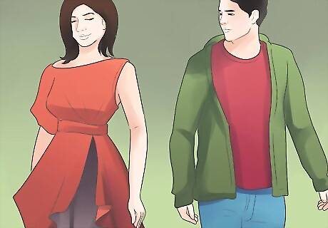 Throw on a sweater or jacket. People in LA know that when the sun goes down, the temperature drops a few degrees. The evenings are pleasantly chilly compared to the blazing hot days. If you plan to be out past sundown, bring along a light layer you can throw on after dark. Drapey cardigans, fitted leather jackets, and trenches are all popular in LA. Styles for men in include jackets and blazers or sweatshirts thrown on when the sun goes down.