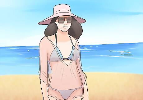 Accessorize your swimwear. Since LA is right on the beach, people often wear swimwear all day long. Choose swimwear you're comfortable being seen in, since you'll probably be living in it for hours. Cover-ups like sarongs or jean shorts and sheer tops provide a little extra coverage for when you make the transition from chilling on the beach to going to an indoor space. Accessorize your swimwear like any other outfit. Wear jewelry, hats, sunglasses and scarves. Consider buying a large purse that doubles as a beach bag. Totes and other large bags are popular in LA.