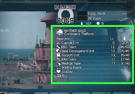 Expand your Combat Unit Platform. At some point in the game (once you finish about 7–8 main missions), you will be asked by Miller to create a Combat Unit Platform back at Mother Base. You should then start building as many platforms as possible (you can build up to 4 of each).