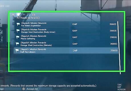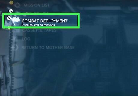Check your iDroid for Combat Deployment Missions. Send you combat unit staff on Combat Deployment missions using your iDroid. Go to the Missions tab and look for a Combat Deployment option. Like main missions and side ops, these missions will also give you GMP as well as other resources that your Mother Base needs. Some of these missions are also helpful in disrupting the supply of weapons (sniper rifles) and equipment (helmets, night vision goggles) to your enemies.