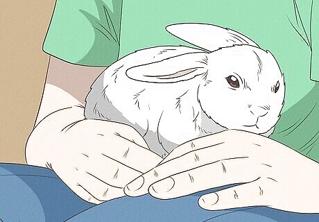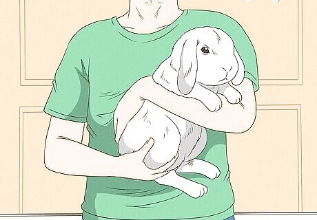 Hold a rabbit correctly. Though you want to minimize the amount of time you spend holding most rabbits, it is safe to do so for a short time. Make sure to fully support the weight of the rabbit’s body. Always use your arm or body to provide a surface for your rabbit's hind legs as well. Never lift a rabbit by its ears. Never hold a rabbit with its belly upward.