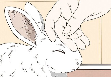 Increase cuddling at the rabbit’s pace. Once your rabbit is comfortable with you scratching their head, you can begin to pet their back as well. Limit your petting to head scratches and back rubs until the rabbit lies down beside you. They may even hop right alongside you and lie down with their back against your arm. Allow them to dictate the amount of physical contact they are comfortable with.