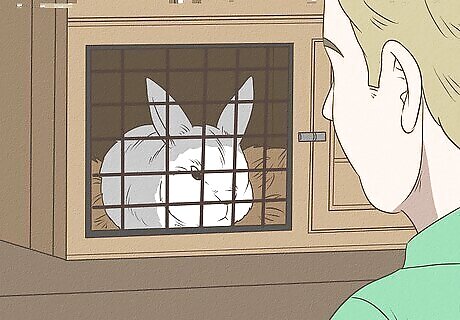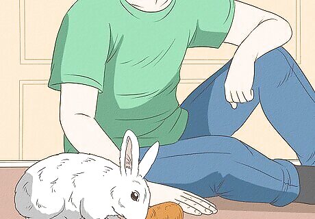 Spend time together alone. Rabbits can easily be startled or overwhelmed by the noise and movement of multiple people. Similarly, other pets are likely to terrify a pet rabbit until they’re used to their presence. In order to start earning your rabbit’s trust, join your rabbit in the room where it lives without any other humans or animals present.