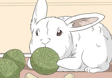 Offer something for your rabbit to chew. Aside from edible treats, you have other options to help get your rabbit to warm up to you. Offer a stick to chew on or mineral chews designed specifically for rabbits. Rabbits enjoy chewing on things, and they must do so frequently to maintain the health of their teeth. Opt for apple, willow, aspen, and pine branches. Untreated pine lumber can also be used to build a hay basket. Your rabbit can then safely chew on the basket that stores its food! Make sure apricot or peach wood has been dried at least one month before giving it to your rabbit to chew.