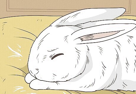 Watch for signs of injury or illness. Even if they’re shy, your rabbit should be active and alert. A healthy rabbit will frequently walk around its cage, eating, drinking, and making soft noises. If these behaviors are not occurring, look for other signs your rabbit may be sick. Make sure breathing is clear, and that the rabbit’s eyes and fur look healthy. If your rabbit begins to lose weight or hair, is lethargic, or has discharge coming from any part of their body, take them to a veterinarian.