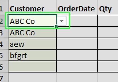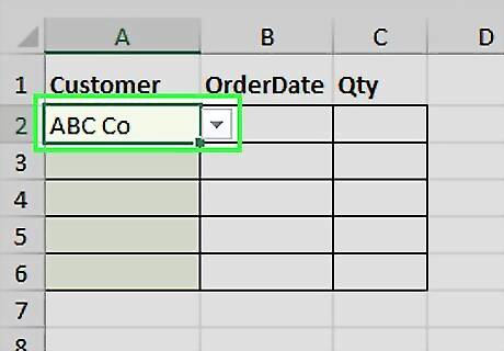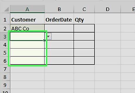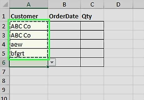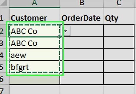 Select all of the cells in the drop-down menu. Be sure to include the new values you’ve added. For example, if the items in your drop-down list are in A2 through A9, highlight A2 through A9.