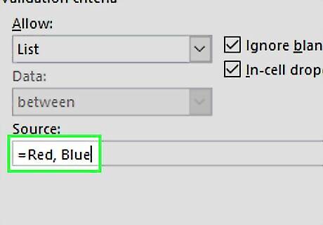 Add or remove items from the “Source” field. Be sure to separate each item with a comma (,). Example: Red, Blue, Green, Yellow.