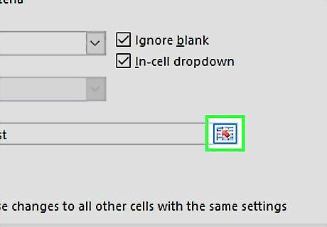 Click the upward-pointing arrow. It’s next to the “Source” field. This collapses the Data Validation window to a smaller size.