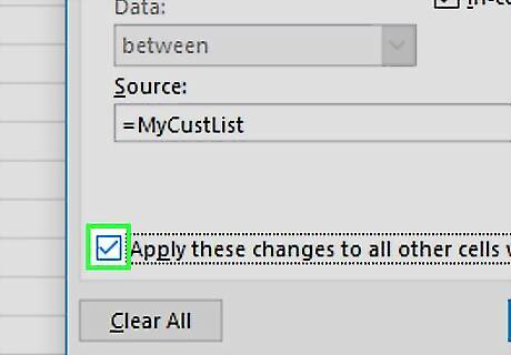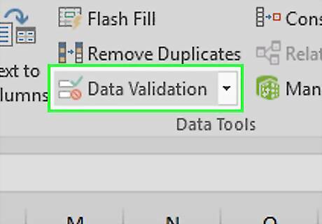 Click Data Validation. It’s in the “Data Tools” section of the ribbon bar at the top of Excel.