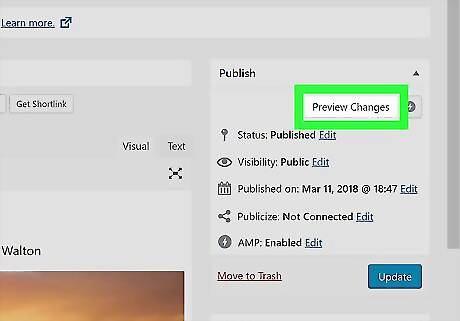 Click on Preview Changes. Once you have made all of the desired changes, you can preview your work before putting the changes on your live website. You should see “Preview Changes” near the top right of the window in the “Publish” box. Clicking on this will open a new tab or window where you can see what the updated page will look like.