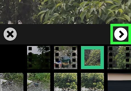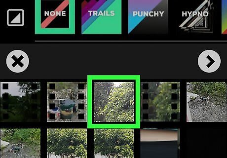 Select a filter. Lighting and effect filters are in the top row of options below the preview. Swipe across the options, then tap one you want to use. If you don't want to use a filter, select NONE.
