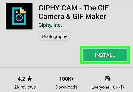 Install GIPHY CAM from the Play Store. If you don't already have this free app, here's how to get it: Open the Play Store. Type ″giphy cam″ into the search bar. Tap GIPHY CAM – The GIF Camera & GIF Maker. Tap Install.