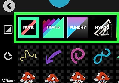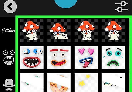 Add stickers. The next several rows of options are various stickers you can add to your GIF. Scroll through the options, then tap any stickers you want to add. Use your finger to drag a sticker anywhere on the image or video. To increase the size of a sticker you've placed, place two fingers on the screen over the sticker, then spread them apart. To reduce the size of a sticker, pinch two fingers together on the screen over the sticker.