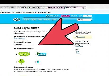 Use the Skype URI to show the links for “Call” or “Chat” on your web pages. Type your Skype username in the place of “User name” to link your Skype account. Now type “Call” or “Chat” to indicate how people will contact you via Skype. For example: Call Chat