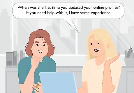 Offer to help update their online profiles. If you have experience with optimizing online profiles, you may be able to help them with their LinkedIn or other networking profile. Visit their profiles first and offer your help if you notice that the profiles could use updating or optimization. Say something like, "When was the last time you updated your online profiles? If you need help with it, I have some experience." Make sure that their profile picture best represents their professional side.