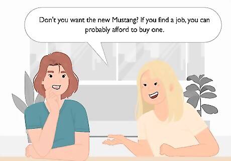 Discover the person's motivations. Figure out what motivates the person and emphasize the importance and necessity of having a job in order to accomplish their goals. Once you know what motivates them, you'll have the information you need to convince them to start looking for a job. You can say something like, “Don't you want the new Mustang? If you find a job, you can probably afford to buy one.” Typically, people need a job to stay motivated and to feel fulfilled.