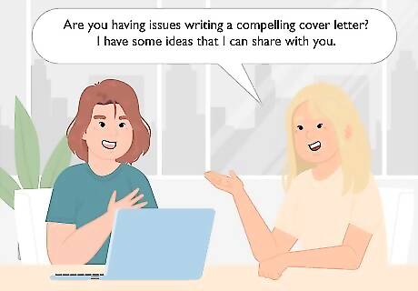 Ask them if they want help with their resume and cover letter. Offer to review their resume and cover letter for typos. Offer advice on how to change or modify either so they can improve their chances of getting an interview. You can say something like, "Are you having issues writing a compelling cover letter? I have some ideas that I can share with you." If you have experience with finding a job, you can give more useful advice on how to optimize their resume and cover letter for success.