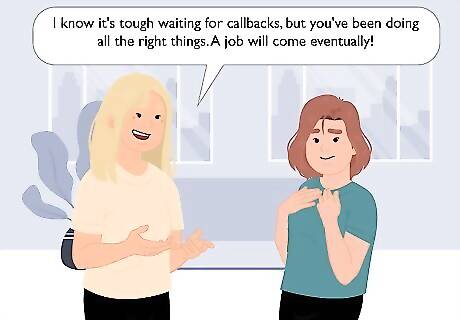 Reassure them if they are making progress. It can be tough finding a job in certain markets. If the person has been looking for a job for a long time, it could be discouraging. Talk to them about their difficulties and reassure them that they are on the right path, even if they haven’t gotten an interview or callback. You can say something like, "I know it's tough waiting for callbacks, but you've been doing all the right things. A job will come eventually!"