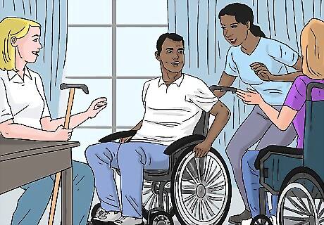 Consider transferring the disabled person to a care facility. In cases of extreme injury and/or illness, it may be impossible for the person to manage on their own at home. It may also be too expensive to hire full-time caregivers, and even full-time caregivers may not be able to provide adequate medical care and support in severe cases. For cases where the medical needs of looking after the disability are higher, consider transferring the person to a facility where this type of care can be available on an "as-need" basis, or even on a 24/7 basis. Another reason to transfer someone with a disability to a group care facility is to enhance their social connections. It is a fine line to walk, because some people get depressed at the idea of moving out of their home; however, others thrive as it gives them many more options of things to do during the day, people to connect with, and others who are in similar situations.