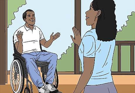 Offer to introduce the disabled person to health focus type fitness programs or sports groups. These usually range from a more gentle activity such as Tai Chi, water exercises and other kinds of exercises aimed at improving mobility and circulation, to more complex sports and games depending upon the person's abilities and the extent of the disability.