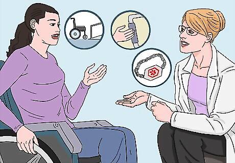Make sure the home is adapted to fit the person's disability. One option is to contact an occupational therapist (someone whose job consists of helping to adapt home situations for disabled people). You can start by making some basic adjustments yourself to help the disabled person, as the two of you see fit. Some things to consider include: Is the person now a wheelchair user? If so, are there ramps to get in and out of the house? Whether or not they are in a wheelchair, are they able to get from one floor or the house to another if it is a multi-floor house? Is there any way to make this easier, such as with the installation of handrails? Bathroom tasks may also be made easier with handrails, for instance to help with showering and/or toileting. If the person is at risk of falls where they may not be able to get up to reach a telephone and call for help, do they have a medical alert button they can press and/or a medical alert bracelet detailing their medical conditions for if and when something happens and emergency medical personnel arrive? These are just some of the things to consider. They can likely give you the best indication as to things they are struggling with mobility-wise at home, and either you or the occupational therapist can then think of creative ways to help. The occupational therapist can also conduct a complete evaluation of the home environment that is much more thorough, and provide innovative solutions that we often cannot think of ourselves given that they work in this field and have lots of experience.