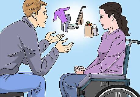 Ensure that the disabled person has adequate support. If they are unable to complete any or all of the tasks of daily living above, think about who you can put in place to be of assistance. Are you or other family members or friends able to help? Is a full-time caregiver needed? Note that ensuring the basic needs of daily living are accounted for and looked after is key to enhancing life for a disabled person. It not only lifts one's spirits by alleviating stress that these things will be taken care of, but also helps someone living with a disability to feel supported and cared for by those around them as it shows that others have taken an interest in their well-being.