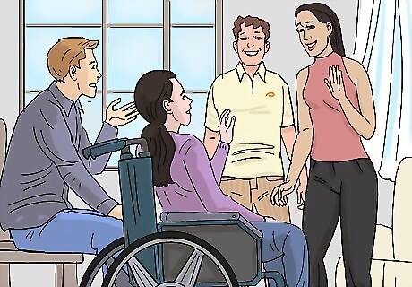 Plan regular trips or visits. If a loved one, family member, or dear friend is disabled, one of the most powerful ways to show your love and support — and to demonstrate to them how much you care — is to stop by for regular visits. Life can be hectic with any number of personal commitments, but if you can take the time out of your busy schedule to stop by once a week, or even once a month (whatever you have time for), it can make a big difference to their mental and emotional wellbeing. Connection with other people is one of the most vital things in helping us to thrive as human beings! When you do visit, bring an excited energy to make the person feel wanted and appreciated. Also, make an effort to relate to them in the same way you did prior to the disability. This will show them that you see them as the same person, and that nothing has changed for you at the heart level as a result of the challenges they are facing with their body. This will boost their self-esteem and feelings of self-worth, because many people do not want to be viewed in a different light by their loved ones simply because of a physical disability or challenge.