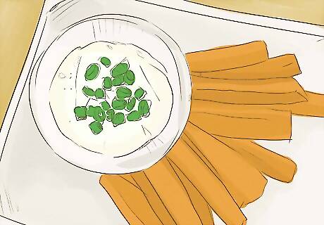 Ask for your condiments or salad dressing to be served on the side. Condiments like mayonnaise, tartar sauce, sour cream, barbecue sauce, and salad dressings can be deceivingly high in calories and sugars. Mayonnaise, for example, has about 180 calories for every 2 tablespoons or 30 milliliters (1 fl oz). Those calories can add up quickly. Ask to receive the condiments or salad dressing in a small container on the side so you can control the amount you use. Opt to use mustard or hot sauce to enhance the flavor. At about 20 calories for 2 tablespoons, mustard is a tasty, low-calorie condiment that packs a lot of flavor. Hot sauce can also kick up the flavor. There are only 3 calories for 2 tablespoons, and all you really need is a little dash!