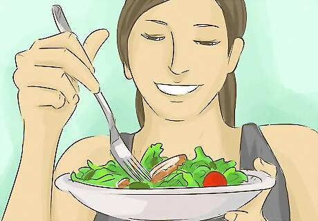 Enjoy a salad with lean protein. Enjoying a diet rich in vegetables and lean proteins can help you lose weight, increase your energy levels, and maintain muscle mass. When ordering fast food, consider enjoying a salad with grilled chicken with a light dressing on the side. Be mindful of salads that contain creamy dressings, shredded cheese, bacon, and other calorie-dense condiments. These additions can turn a healthy, lean salad into a calorie-dense meal.