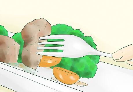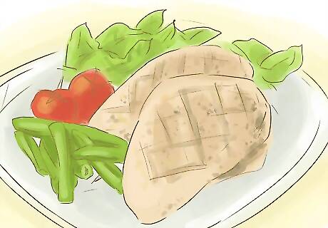 Eat a balanced diet. Increase the amount of fresh fruits, vegetables, whole grains, and lean proteins in your diet to help you with your weight-loss goals. Enjoying these healthy options at most meals will allow you to conserve more calories that you can later use to enjoy the occasional fast-food treat.