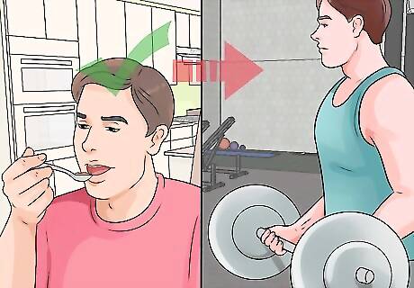 Include higher intensity exercises after eating. If you're following an intermittent fasting program or a fasting diet for weight loss, you can still include more vigorous intensity exercise. Ramping up in the intensity or frequency of your exercise program is possible, but it's best to to do this on the days you've eaten. After meals or snacks your body has had the chance to replace its primary fuel of glycogen. You'll also have a more steady supply of glucose in your body from your recently eaten meals or snacks. Some experts recommend only doing your higher intensity workouts immediately after meals to help ensure you have enough fuel (carbohydrates) to last you throughout your workout.