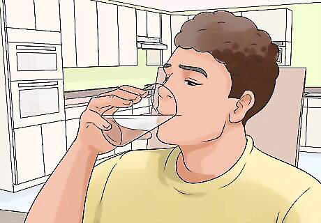 Drink water. Unless your fast includes abstaining from water, it's essential to avoid dehydration when exercising. Adequate hydration is important for your body's normal, daily functioning. Generally, most health professionals will recommend you consume anywhere from eight to 13 8-oz glasses (2 to 3 liters) of water daily. Most fasts will allow you to have water (even fasts for medical exams or tests). Make sure to ask or review your fasting plan to see what you can and cannot have as far as hydrating fluids.
