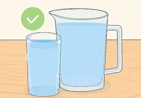 Drink water before, during, and after your workout. During your period, your body needs more water than usual. Staying hydrated may reduce headaches or bloating that might occur. Drink 8 ounces (230 g) fifteen minutes before you start exercising, and continue to drink water throughout your workout.